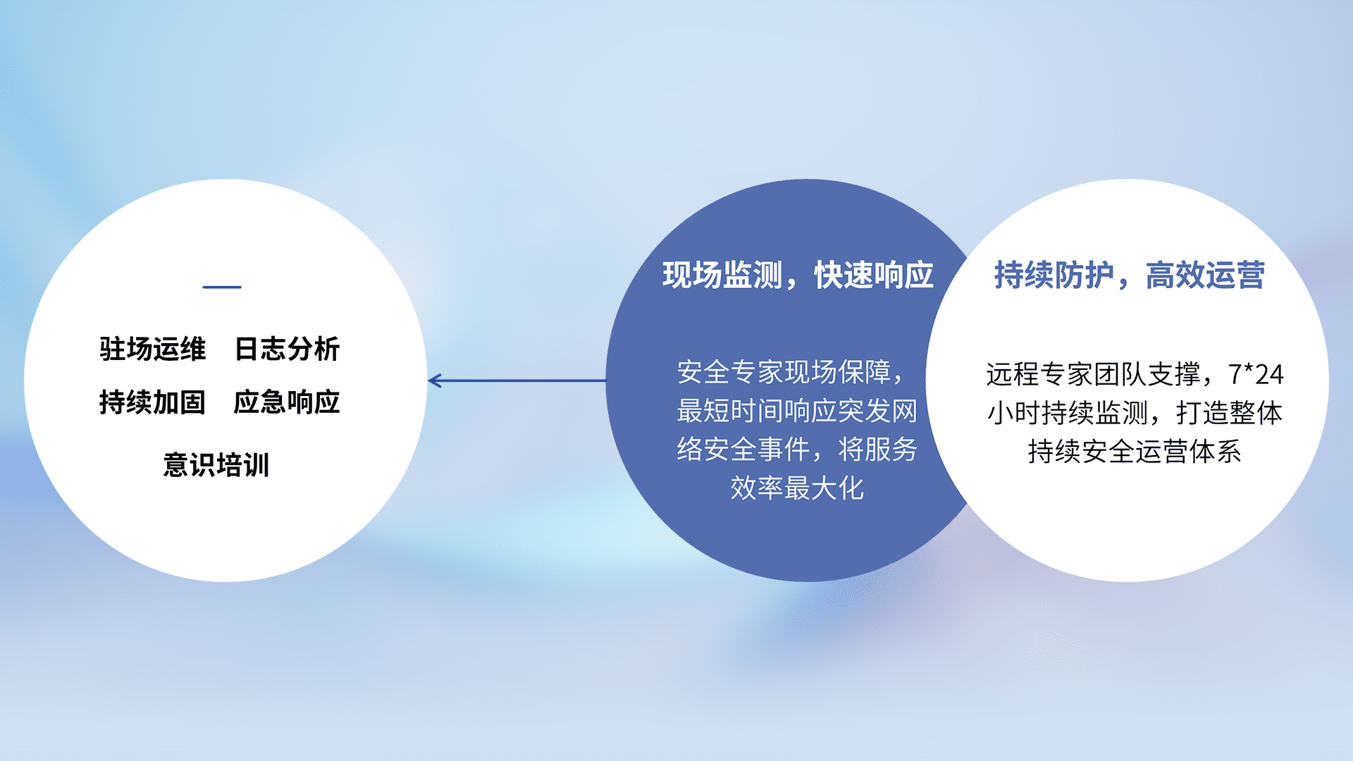 7X24小时持续监测安全事件,保持安全策略有效性,降低资产脆弱性风险,,精准拦截黑客攻击,,,减少被黑客利用的机会,,,第一时间遏制,,,,降低损失。。。